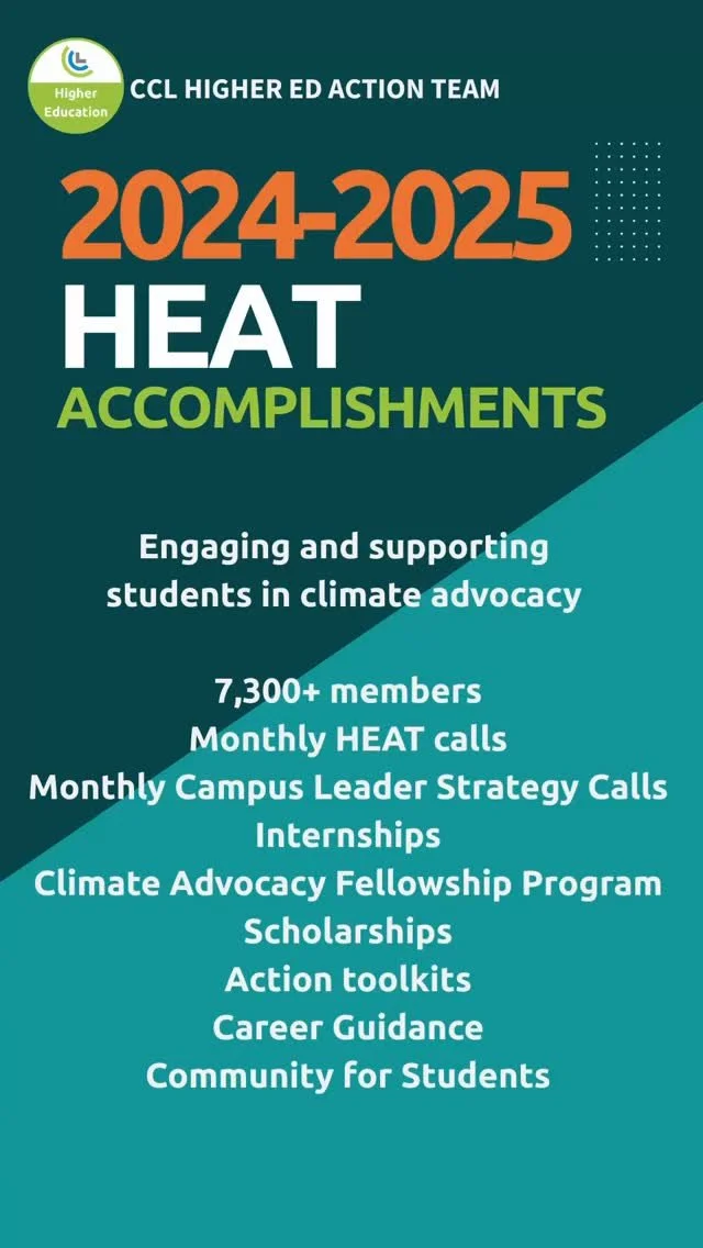 If you are a student, you are welcome to join the Higher Education Action Team. The team meets monthly with campus leaders and students from different universities across the country to coordinate climate actions and get general updates.